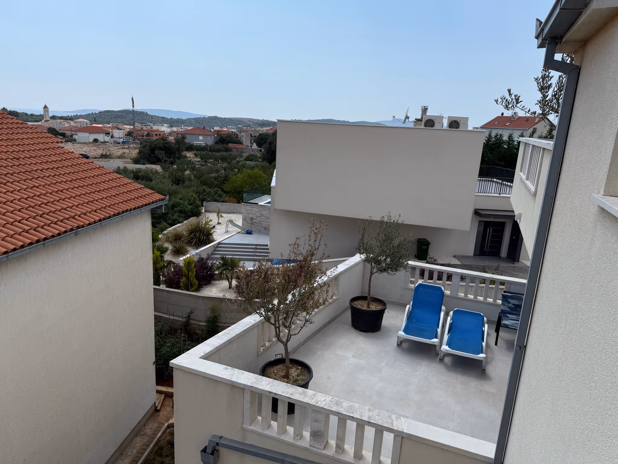 Die UNESCO-Stadt Trogir liegt nur 2,5 km entfernt – perfekt für Abendspaziergänge, Essen und Einkaufen. Split (29 km) lockt mit Altstadt, Diokletianpalast und promenaden.
