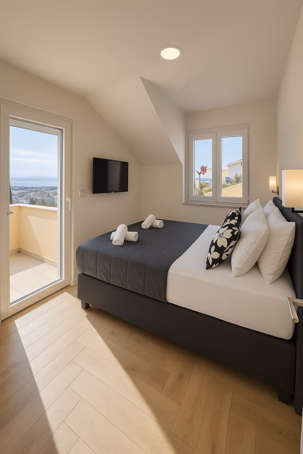 Je nach Apartment zwischen einem und drei Schlafzimmern. Unser Penthouse „Mediterana“ verfügt über drei separate Schlafzimmer.