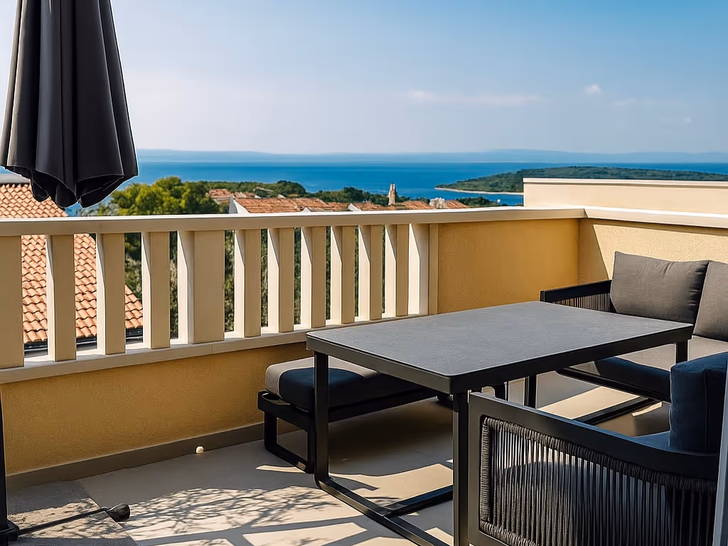 Zwei stilvolle Schlafzimmer mit Doppelbetten, eine ausziehbare Couch im Wohnbereich und viel Platz für bis zu 6 Personen: Das Apartment Lavanda vereint Komfort und mediterrane Eleganz. Ideal für Familien oder Freunde, die gemeinsam Meerblick, Sonne und Entspannung genießen möchten.