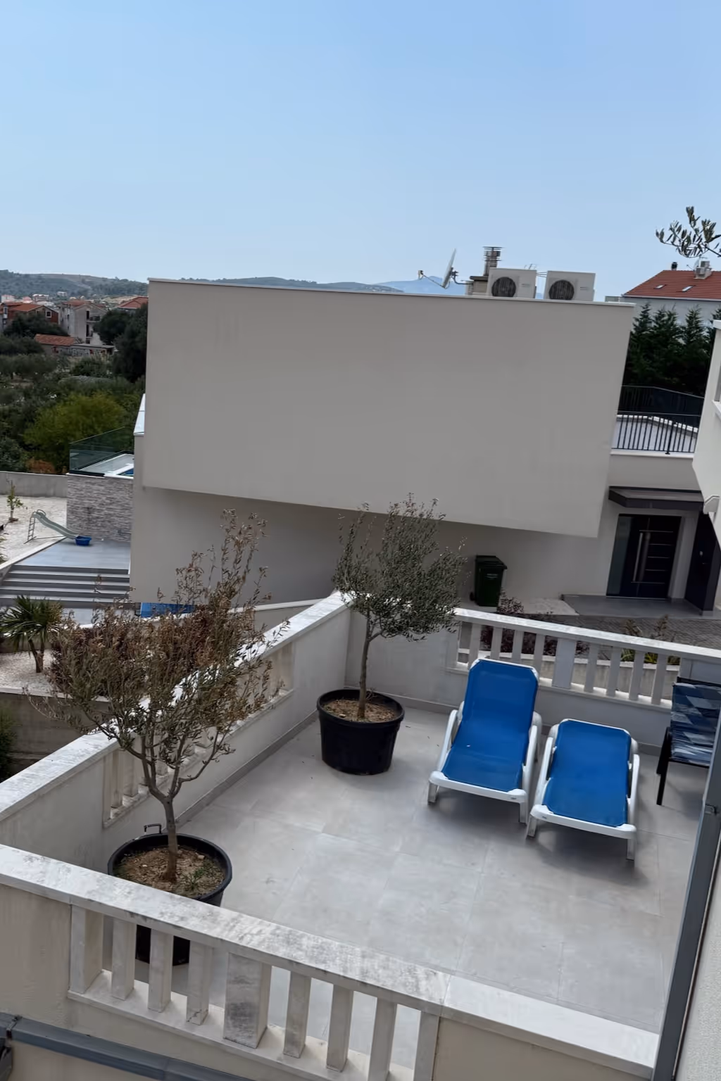 Mit einem geschmackvoll eingerichteten Schlafzimmer und einer komfortablen Schlafcouch im Wohnbereich bietet das Apartment Maslina den idealen Rückzugsort für Paare oder kleine Familien. Der großzügige Wohn- und Essbereich ist offen gestaltet und die voll ausgestattete Küche lädt zum gemeinsamen Kochen ein. Eine große Terrasse mit Blick auf die mediterrane Umgebung rundet das Wohnerlebnis ab – Ruhe, Leichtigkeit und Genuss inklusive.